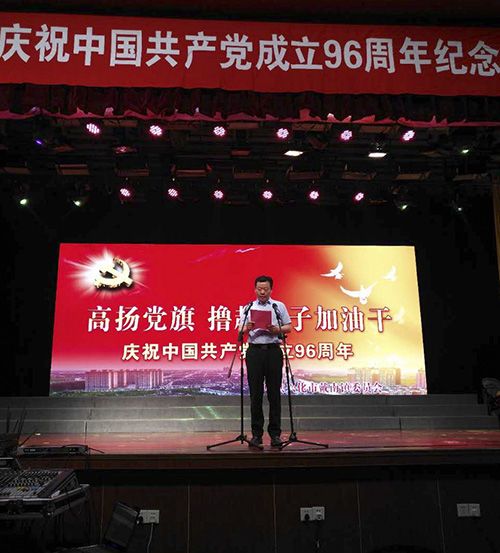 6月30日上午,戴南鎮“慶祝中國共產黨成立96周年紀念表彰大會”在鎮文化中心隆重舉行。會上興化市委常委、市政協主席、鎮黨委主要負責人沙順喜做了重要講話,鎮黨委副書記、鎮長夏愛東宣讀了“2016~2017年度先進黨組織”,“優秀共產黨員”,“十佳共產黨員”的決定。我公司被表彰為“先進黨組織”,公司員工何云水、董寶平被表彰為“優秀共產黨員”,杜忠罡同志獲得“十佳黨員”提名。同時,會上公司新黨員、顧小友同志參加了鎮黨委組織的預備黨員入黨集體宣誓儀式。